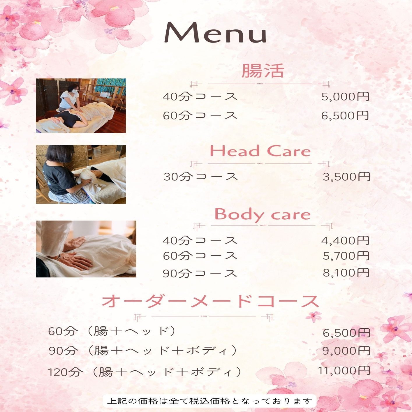 (目安)腸活35分+ヘッド15+ボディ60分+タッピング等10分